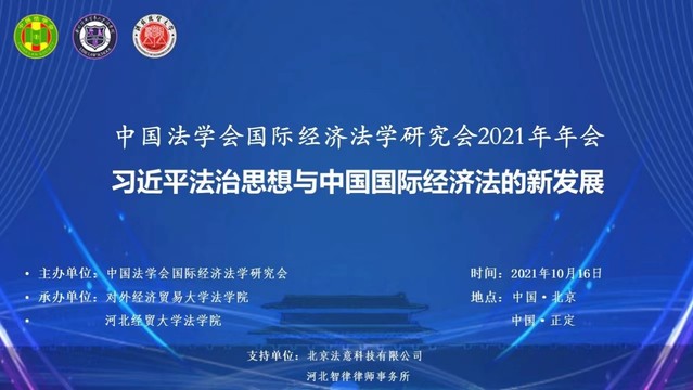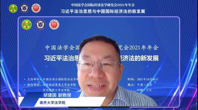 2021年10月16日,由中国法学会国际经济法学研究会主办,对外经济贸易大学学院和河北经贸大学学院承办的中国法学会国际经济法学研究会2021年年会暨“习近平法治思想与中国国际经济法的新发展”研讨会顺利召开。会议采取“线上+线下”方式,线下会场分设于北京和河北正定。国家发展和改革委员会、商务部、最高人民法院等有关部门,全国高校和科研院所的专家学者、实务界人士与会,437必赢会员中心胡建国副教授和部分研究生参加了会议,胡建国副教授进行线上发言。