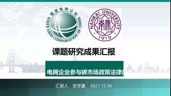 2021年12月30日上午,由437必赢会员中心副院长史学瀛教授主持的国网天津市电力公司项目《电网企业参与碳市场政策法律问题及其对公司制度影响研究》验收会以线上线下相结合的方式在国网天津电力法律部会议室顺利举行。评审专家组成员由国家电网公司法律部副主任刘春瑞、国网北京电力法律部主任赵海峰、国网能源院管理所创新室主任刘进、天津唯睿律师事务所主任袁宏伟、天津市路灯管理处副主任韩艳伟、三源公司总法律顾问舒雪梅担任。国网天津电力法律部、发展研究中心相关人员以及课题组全体成员参加了此次会议。会议由国网天津电力总法律顾问兼法律部主任周群主持。
