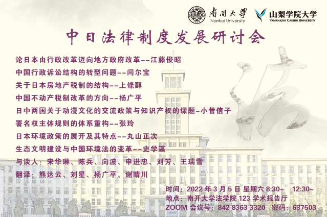 我校与日本山梨学院大学1993年签署学术交流协议。三十年来,两校的法学学科积极开展学术交流活动,互派教师、留学生,共同举办学术研讨会。从比较法视角,对中日两国法律文化、法律制度的异同、借鉴进行广泛深入地探讨,加深了两校的国际合作和友谊。
