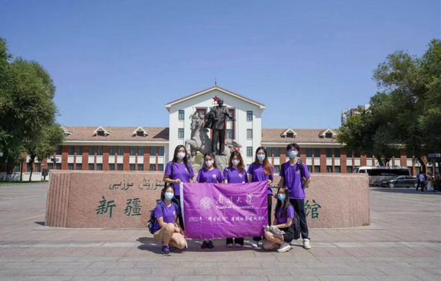在学院屠振宇教授、团委副书记周敬文老师的指导下,2021级本科生胡馨予带领的队伍以“触石城红色脉搏,探兵团特色模式”为主题,远赴新疆生产建设兵团第八师石河子市,经与石河子市文体局多次沟通协同,以“读、学、研、讲”四位一体模式开展实践活动。实践队与新疆兵团军垦博物馆正式合作共建,挂牌我校社会实践基地,实践期间在博物馆的支持协助下录制红色微课视频5期,实践队员以青春视角和动情讲解,重现红色故事,传播红色文化,传承红色基因。