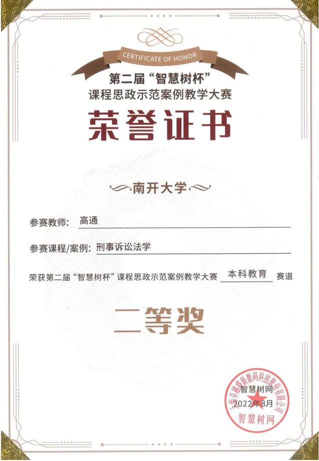 (通讯员 张晶晶)近日,由东西部高校课程共享联盟运营服务单位智慧树网主办的第二届“智慧树”杯课程思政示范案例教学大赛圆满落幕,437必赢会员中心高通副教授的参赛案例“刑事诉讼法学”荣获本科教育赛道二等奖。