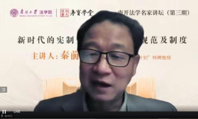 讲座伊始,屠振宇教授首先向大家隆重介绍了秦前红教授,对秦老师受邀举办讲座表示感谢。正值我国现行宪法颁布实施40周年、即将迎来第九个国家宪法日和第五个宪法宣传周之际,秦老师为南开师生在线举办讲座,体现了秦老师一直以来对南开学院的关心与厚爱。