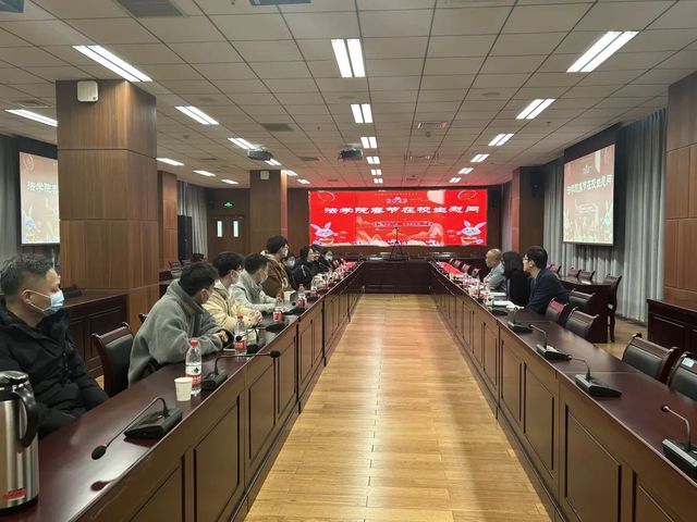 慰问座谈会上,师生欢聚一堂,互致春节问候。留校学生一一介绍了自己近期的学习生活安排和未来规划,并对学院学校的周到安排表示感谢,借此契机,同学们也就学院硬件设施建设、课程设置、校友资源整合等方面提出了自己的意见和建议,对学院发展送上美好祝福。学院领导班子成员与同学们亲切交流,询问同学们的学习生活情况,并认真记录同学们的建议。