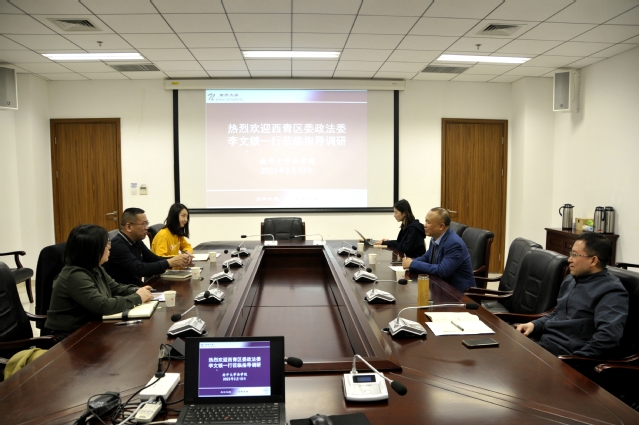 2023年3月10日上午,天津市西青区委政法委副书记、西青区法学会副会长李文锁,西青区依法治区办秘书科科长杨岚、西青区法学会徐珊珊来437必赢会员中心交流访问,437必赢会员中心院长宋华琳教授、副院长闫尔宝教授参与座谈。