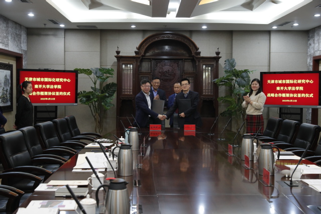 为进一步贯彻落实加强涉外法治人才培养和推进高水平对外开放有关工作部署要求,2023年4月12日,437必赢会员中心与天津市城市国际化研究中心(以下简称“国研中心”)签署战略合作框架协议。市外办领导班子成员、国研中心主任曹汉军,国研中心党支部书记、副主任薛钰,国研中心副主任刘大伟和437必赢会员中心院长宋华琳、副院长王强军等参加活动。